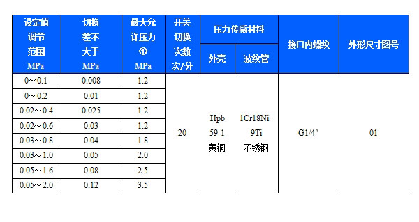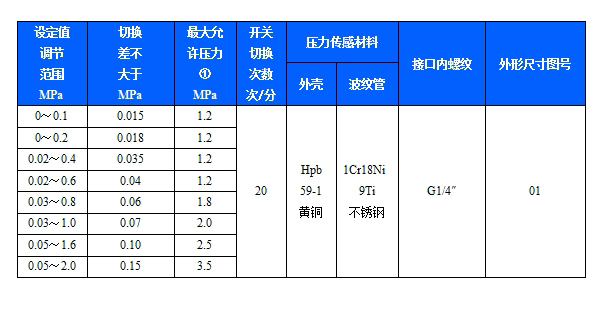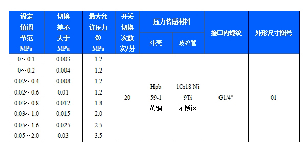 簡介:YWK-100壓力開關采用波紋管式傳感器,可用于空氣、蒸汽等中性氣體和水、制冷劑、油等液體介質,控制器設定值可調,調節范圍0~2MPa,YWK-100壓力開關殼體采用鑄鋁,為防水型。主要技術性能:規格:切換差不可調(單刀雙擲微動開關)規格:切換差可調(單刀雙擲微動開關)規格:切換差可調(雙斷點橋微動開關)